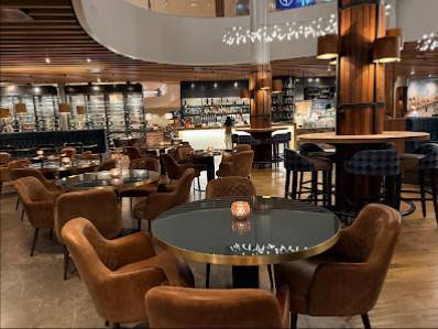 Maklumat menarik lain: Tempat duduk luaran, Perkhidmatan di tapak, Makan di restoran, Penghantaran, Kopi yang enak, Makan tengah hari, Makan malam, Makan bersendirian, Pintu masuk yang boleh diakses kerusi roda, Tempat duduk yang boleh diakses kerusi roda, Alkohol, Bir, Kopi, Minuman keras, Wain, Makan tengah hari, Makan malam, Pencuci mulut, Tempat duduk, Bar di tapak, Tandas, Kasual, Selesa, Kumpulan, Kad debit, Kad kredit, Pembayaran mudah alih NFC.